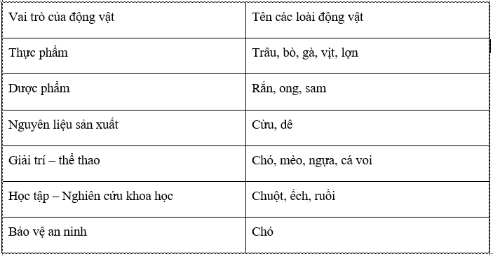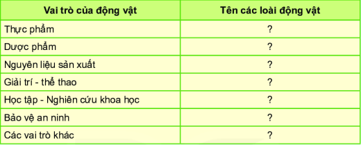 Động vật có những vai trò gì trong cuộc sống hằng ngày của em?