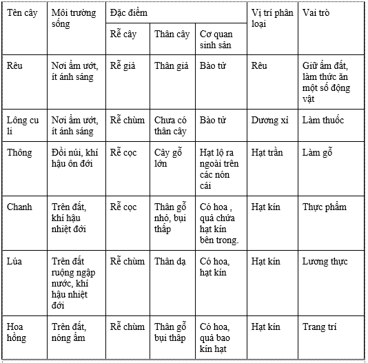 Hoàn thành phiếu học tập theo mẫu phiếu học tập số 1 với khoảng từ 5 đến 10 loài thực vật em đã quán sát được.
