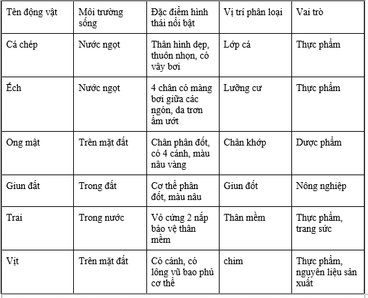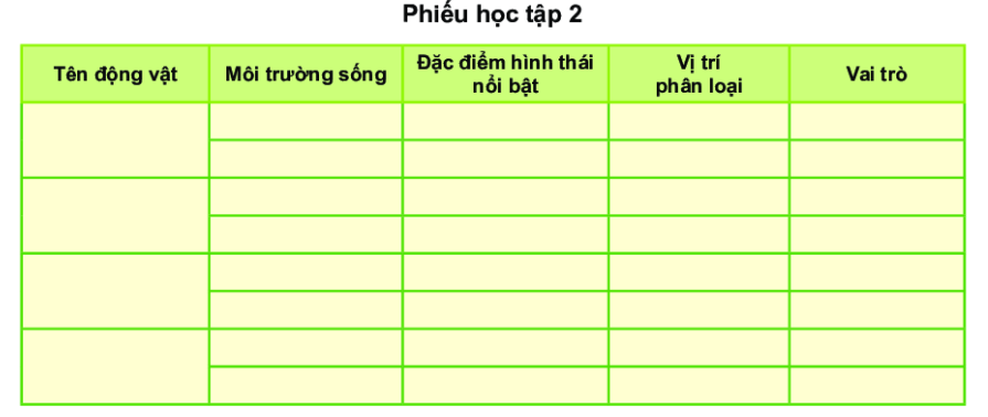Hoàn thành phiếu học tập theo mẫu phiếu học tập số 2 với khoảng 5 đến 10 loài động vật em đã quan sát được.