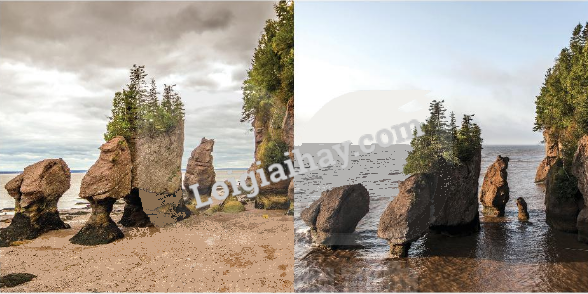 Hình 2. Hiện tượng thủy triều ở vịnh Phăn-đi (Ca-na-đa)
