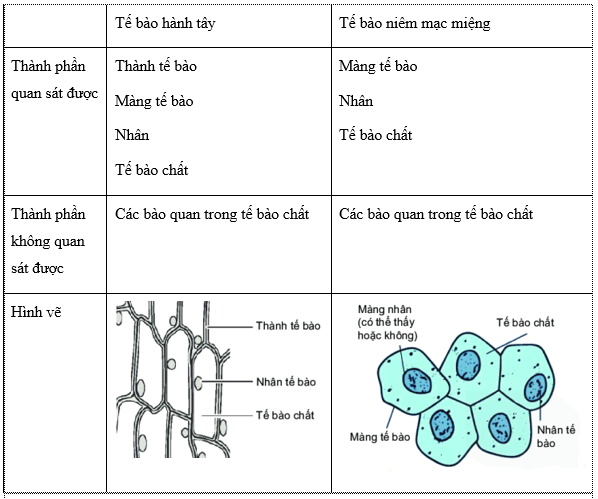 Vẽ lại các loại tế bào đã quan sát được bằng kính hiển vi.