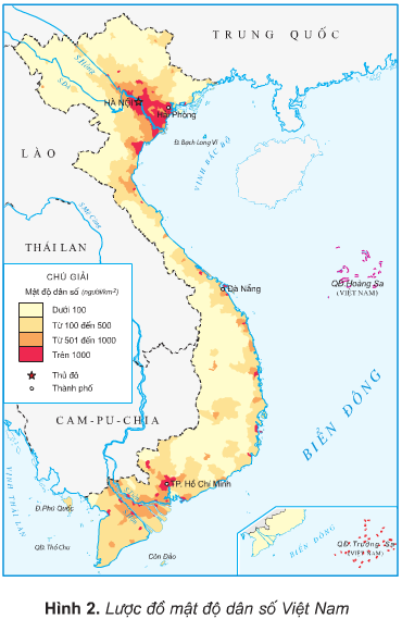 – Vùng đông đúc: chủ yếu ở các đồng bằng (đồng bằng Bắc Bộ, đồng bằng Nam Bộ, dải đồng bằng duyên hải miền Trung), Đông Nam Bộ.