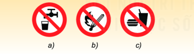 Biển báo ở hình c) có nghĩa : cấm ăn uống, mang đồ ăn vào phòng thí nghiệm.