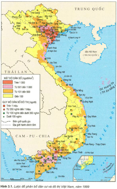 Quan sát hình 3.1, hãy nêu nhận xét về sự phân bố các đô thị của nước ta.