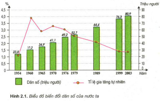 – Dân số tăng nhanh và liên tục trong giai đoạn 1954 – 2003: từ 23,8 triệu người lên 80,9 triệu người (tăng gấp 3,5 lần).