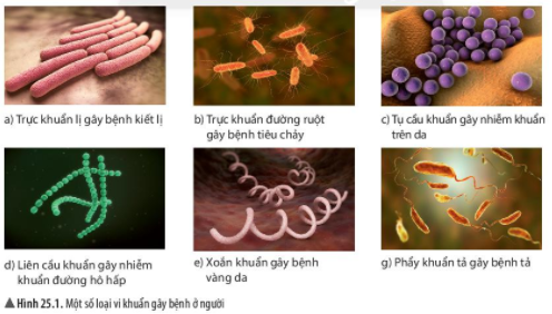 Quan sát hình 25.1, em có nhận xét gì về hình dạng của các loại vi khuẩn. Lấy ví dụ.