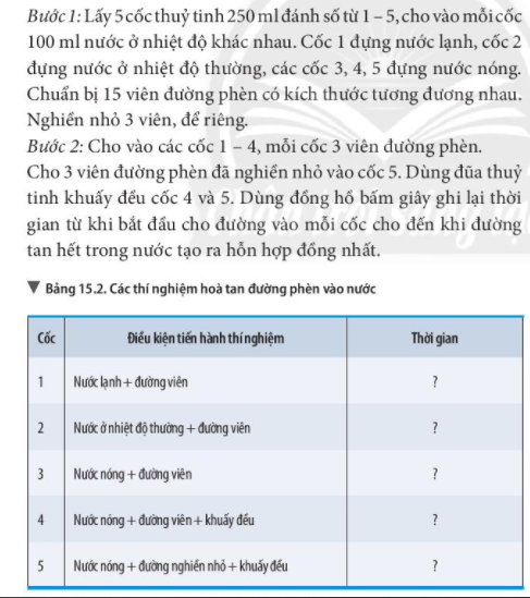 Tiến hành thí nghiệm 3 và hoàn thành kết quả theo mẫu bảng 15.2