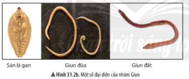 – Nhóm giun: hình dạng cơ thể đa dạng (dẹp, hình ống, phân đốt), cơ thể có đối xứng hai bên, đã phân biệt đầu đuôi – lưng bụng, thường sống trong đất ẩm, môi trường nước hoặc trong cơ thể sinh vật.