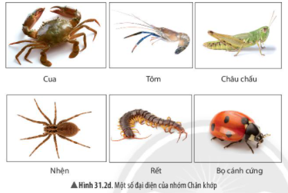 – Nhóm chân khớp: cấu tạo cơ thể chia làm ba phần (đầu, ngực, bụng); cơ quan di chuyển (chân, cánh); cơ thể phân đốt, đối xứng hai bên, bộ xương ngoài bằng chitin để nâng đỡ và bảo vệ cơ thể, các đôi chân khớp động. Số lượng loài đa dạng và phân bố khắp các dạng môi trường.
