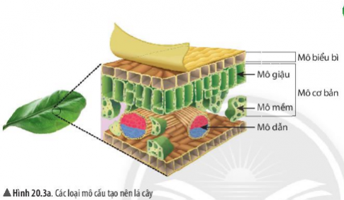 Quan sát hình 20.3a và cho biết lá cây được cấu tạo từ những loại mô nào?