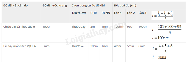 Hãy đo chiều dài của bàn học và chiều dài của quyển sách Khoa học tự nhiên 6 của em. Sau đó hoàn thành theo mẫu bảng 4.2.