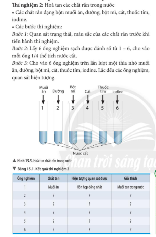 Thí nghiệm 2, em hãy hoàn thành thông tin theo mẫu bảng 15.1