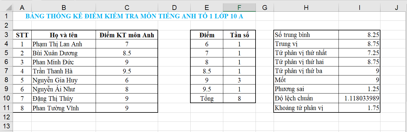 Làm tương tự với điểm kiểm tra các môn học khác của lớp