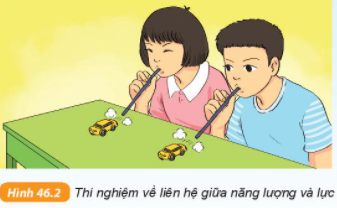 Thổi xe đồ chơi Chuẩn bị: Vài chiếc xe đồ chơi giống nhau và một số ống hút. Tiến hành: Thổi hơi qua ống hút để tạo ra lực đẩy đủ mạnh làm cho xe đồ chơi chuyển động (Hình 46.2).