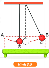 Thực hiện thí nghiệm sau đây để nghiên cứu về sự chuyển hóa và bảo toàn năng lượng trong một chuyển động cơ học. – Chuẩn bị: Hai con lắc (gồm 2 quả cầu giống hệt nhau, treo bằng hai dây nhẹ dài bằng nhau), giá treo cố định, thước mét, tấm bìa đánh dấu hai điểm A, B có cùng độ cao (Hình 3.5).