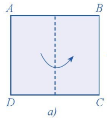 a) Gấp miếng bìa có dạng hình chữ nhật ABCD sao cho đỉnh A trùng với đỉnh B; đỉnh D trùng với đỉnh C (xem Hình 30a).