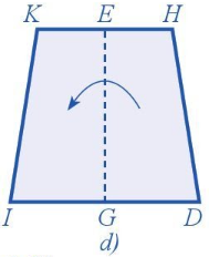 c) Trải miếng bìa còn lại để nhận được miếng bìa có dạng hình thang KHDI (xem Hình 30d).