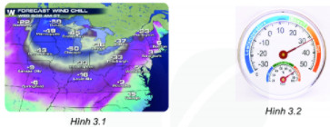 Số -3 đọc là “âm 3”. Tương tự, hãy đọc các số âm mà em thấy trên bản đồ thời tiết (h.3. 1) và trên chiếc nhiệt kế (h.3.2).
