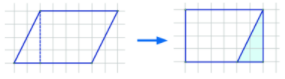 Vẽ hình bình hành trên giấy kẻ ô vuông rồi cắt, ghép thành hình chữ nhật.