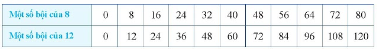 Quan sát bảng sau: a) Viết ba bội chung của 8 và 12 theo thứ tự tăng dần. b) Tìm BCNN(8,12). c) Thực hiện phép chia ba bội chung của 8 và 12 cho BCNN(8,12).