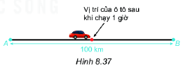 Một chiếc xe chạy với vận tốc không đổi trên một quãng đường thẳng dài 100 km từ vị trí A đến vị trí B hết 2 giờ. Hỏi sau khi chạy được 1 giờ, xe rời xa vị trí A bao nhiêu kilômét, còn cách vị trí, bao nhiêu kilômét (h.8.37)?