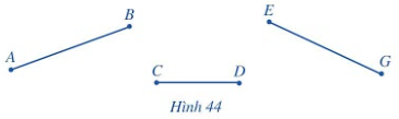 Quan sát Hình 44.a) Hãy đo độ dài của các đoạn thẳng trong Hình 44. b) So sánh độ dài của hai đoạn thẳng AB và CD, AB và EG.