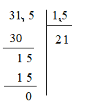 Ta được: 31,5:1,5=315:15=21