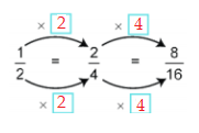 Từ đó suy ra : \(\dfrac{1}{2} = \dfrac{2}{4} = \dfrac{8}{{16}}\)