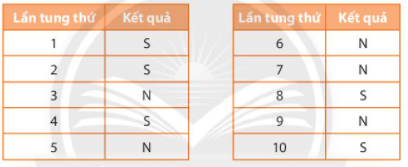 – Bạn Hùng đã tung đồng xu 10 lần. Kết quả của lần thứ nhất là mặt sấp, lần thứ năm là mặt ngửa.