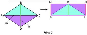 Quan sát hình 3 rồi thực hiện các yêu cầu sau: – So sánh diện tích hình thoi ABCD và diện tích hình chữ nhật AMNC. – Tính diện tích hình chữ nhật AMNC theo m và n.