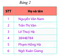 a) Ở STT 4, họ và tên viết bằng chữ số “38448784” => Không hợp lí vì tên người không được thể hiện bằng số => Tên người phải được thể hiện bằng chữ.