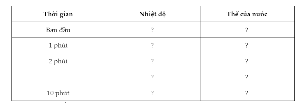 Ghi lại nhiệt độ và thể của nước trong ống nghiệm theo mẫu bảng sau: