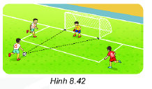 2. Em hãy đo xem góc sút trong hình 8.42, bài Góc bằng khoảng bao nhiêu độ?