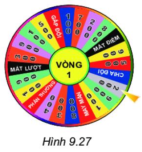 Chiếc nón kì diệu từng là một trò chơi truyền hình nổi tiếng ở Việt Nam. Quan sát hình 9.27 và liệt kê tất cả các kết quả có thể khi quay chiếc nón kì diệu.