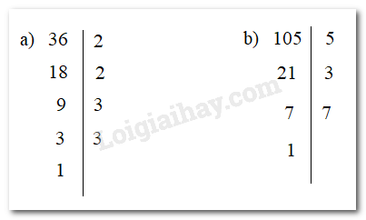 Phân tích các số sau ra thừa số nguyên tố theo sơ đồ cột: a) 36; b) 105.
