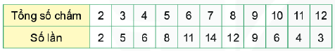 Ta có 14 lần gieo được 7 chấm, 12 lần gieo được 8 chấm, 9 lần gieo được 9 chấm, 6 lần gieo được 10 chấm, 4 lần gieo được 11 chấm và 3 lần gieo được 12 chấm.
