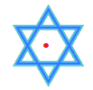 Tâm đối xứng của ngôi sao sáu cánh là giao điểm của 3 đường thẳng nối các đỉnh đối diện của ngôi sao.