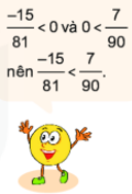 Không quy đồng mẫu số, em hãy so sánh \(\dfrac{{31}}{{32}}\) và \(\dfrac{{ – 5}}{{57}}\)