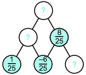 Thay dấu “?” bằng các phân số thích hợp để hoàn thiện sơ đồ dưới đây, biết số trong mỗi ô ở hàng trên bằng tổng của hai số kề nó trong hai ô ở hàng dưới