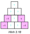 Thay mỗi dấu “?” bằng số sao cho số trong mỗi ô ở hàng trên bằng tích các số trong hai ô kề với nó ở hàng dưới (h.3.18).