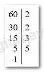 Phương pháp: Để phân tích số 60 ra thừa số nguyên tố theo cột dọc, ta lần lượt chia 60 cho các ước số nguyên tố của nó (nên theo thứ tự từ ước nhỏ nhất đến ước lớn nhất)