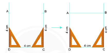 – Trên đường thẳng qua C lấy đoạn thẳng CB=4cm; trên đường thẳng qua D lấy đoạn thẳng DA=4 cm.