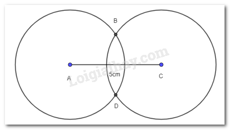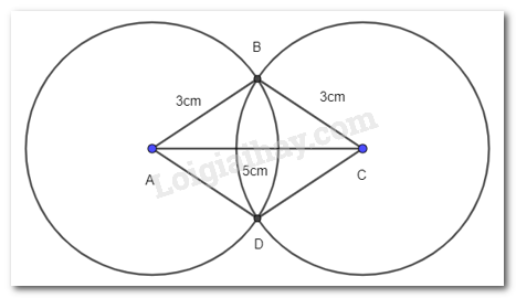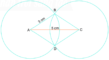 – Lấy A và C là tâm, vẽ hai đường tròn bán kính 3 cm (hình vẽ), hai đường tròn này cắt nhau tại hai điểm B và D.