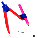 – Lấy A, B làm tâm, vẽ hai đường tròn bán kính 3 cm.