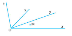 Điểm M trong hình sau là điểm trong của các góc: \(\widehat {zOy},\;\,\,\widehat {zOx},\,\,\;\widehat {zOt}\)