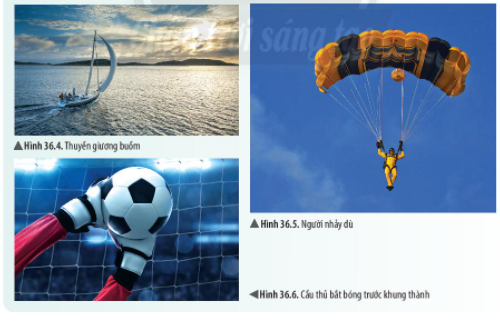 + Hình 36.4: Gió đã tác dụng một lực làm cho cánh buồm bị biến dạng, đồng thời làm thay đổi tốc độ chuyển động của thuyền nhanh hơn.