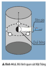 Từ mô hình bên (hình 44.6), em hãy phát để có thể quan sát phần quả bóng được chiếu sáng tương ứng với các hình dạng nhìn thấy khác của Mặt Trăng.