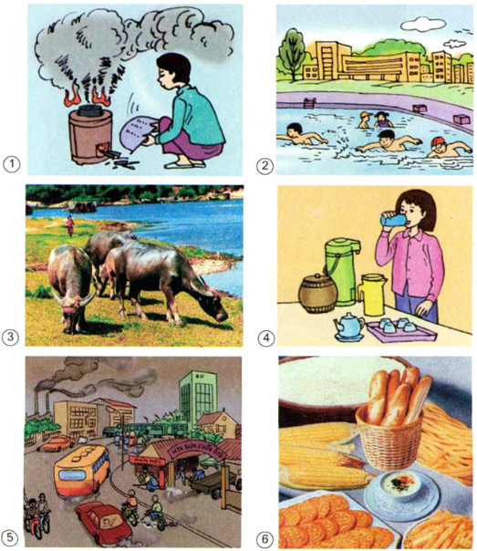 Trong các hình dưới đây, theo bạn, môi trường tự nhiên đã cung cấp ý cho con người những gì và nhận từ con người những gì ?