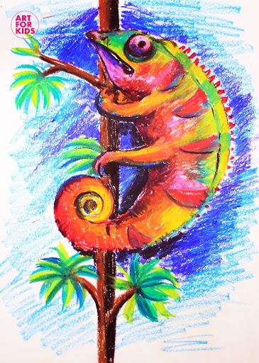 – Điểm độc đáo của tắc kè hoa trong tranh em là toàn bộ tranh mang tính nhiệt đới khá cao (khung cảnh), ấn tượng với sự đa dạng về màu sắc của tắc kè hoa