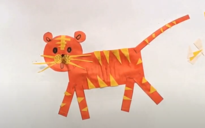 – Các hình đều được lặp lại vì trên chú hổ có nhiều bộ phận mang các hình giống nhau, màu 2 màu đơn giản: cam và vàng